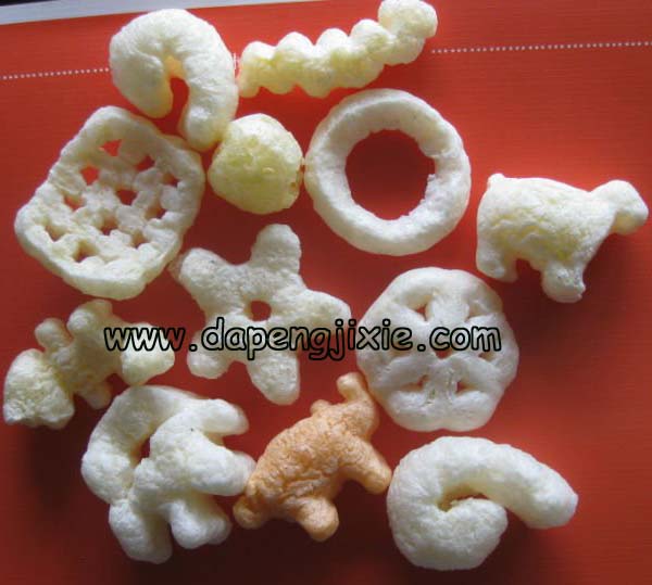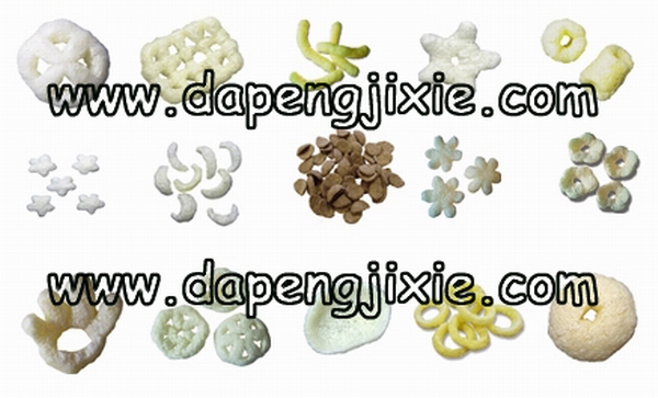 1.Shapes:This type snack food shapes to change is just change the molds of the extruder.